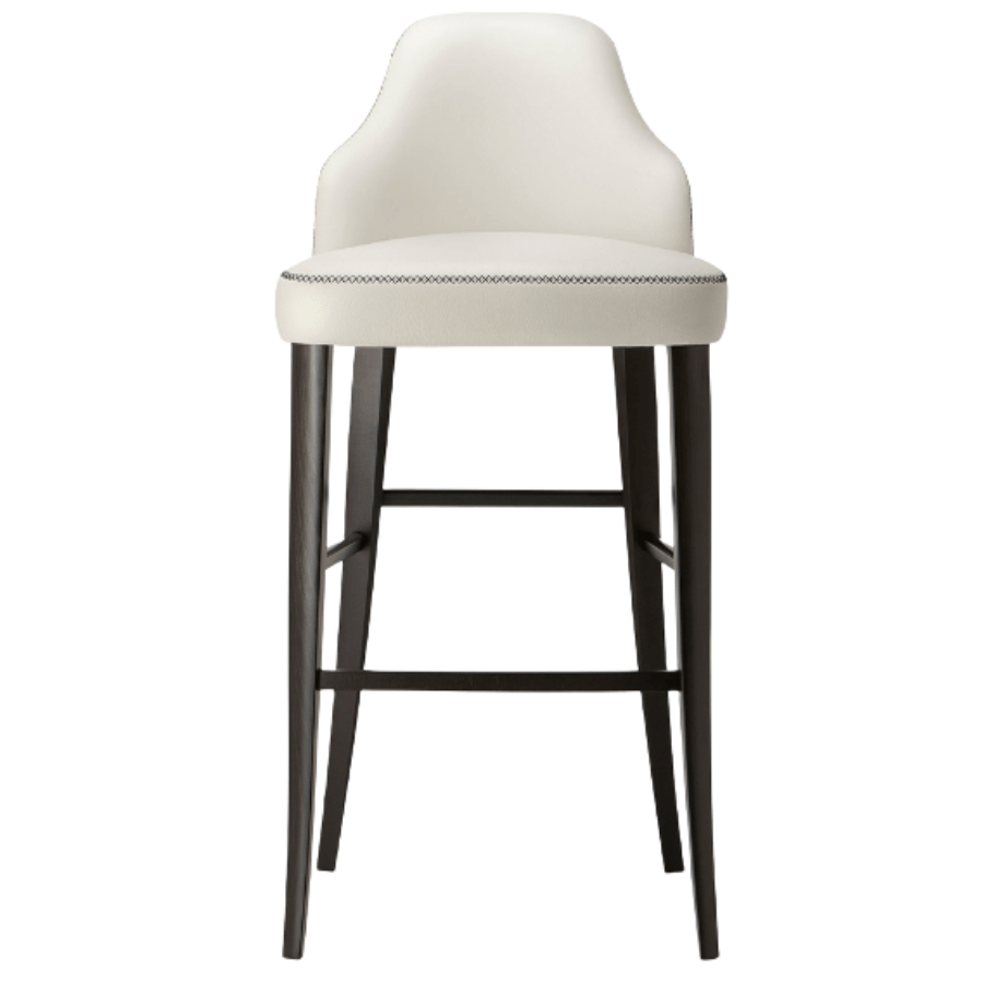 Perfectly suited to elegant sophisticated spaces, the bar stool from the Chicago collection embodies comfort and design in it’s soft lines. The exposed, handcrafted stitching, in a contrasting colour with the upholstery, creates a graphic play along the contours of the padding. The legs, crafted entirely from solid wood, complete this elegant stool. Thanks to the wide range of fabrics and wood stains available, this product easily adapts to any space.